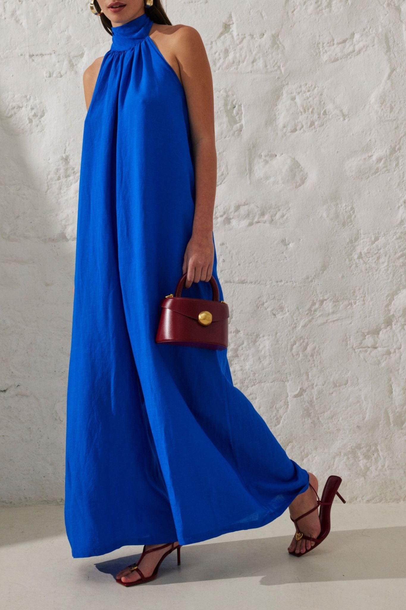 This pantsuit is so feminine and cool, with its high neckline and bare back! Plus: its light, fluid linen/viscose fabric!