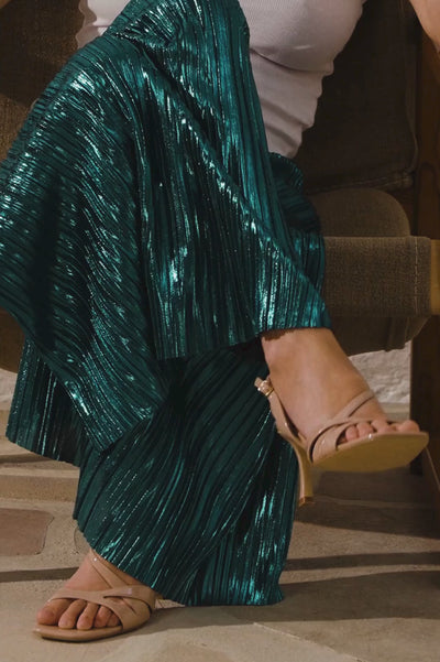 These flowing, loose-fitting pants are embellished with fabric that glistens elegantly with every movement. Designed with fluidity in mind, they offer optimum comfort and style.