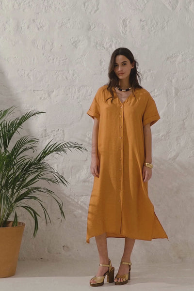 Sleek, plain shirt dress featuring a straight, elegant cut and midi length.