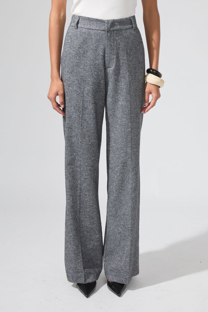 Rodrigue pants feature a straight, high-waisted cut that elongates the silhouette. They stand out for their impeccable fit and pronounced pleats that structure the leg.