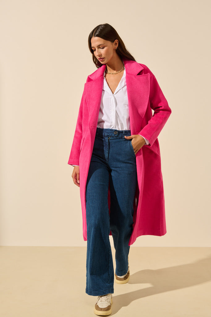 The Romiti coat is a must-have piece this season. This long coat has a minimalist look with a shirt collar, slightly dropped shoulders and a below-the-knee length.